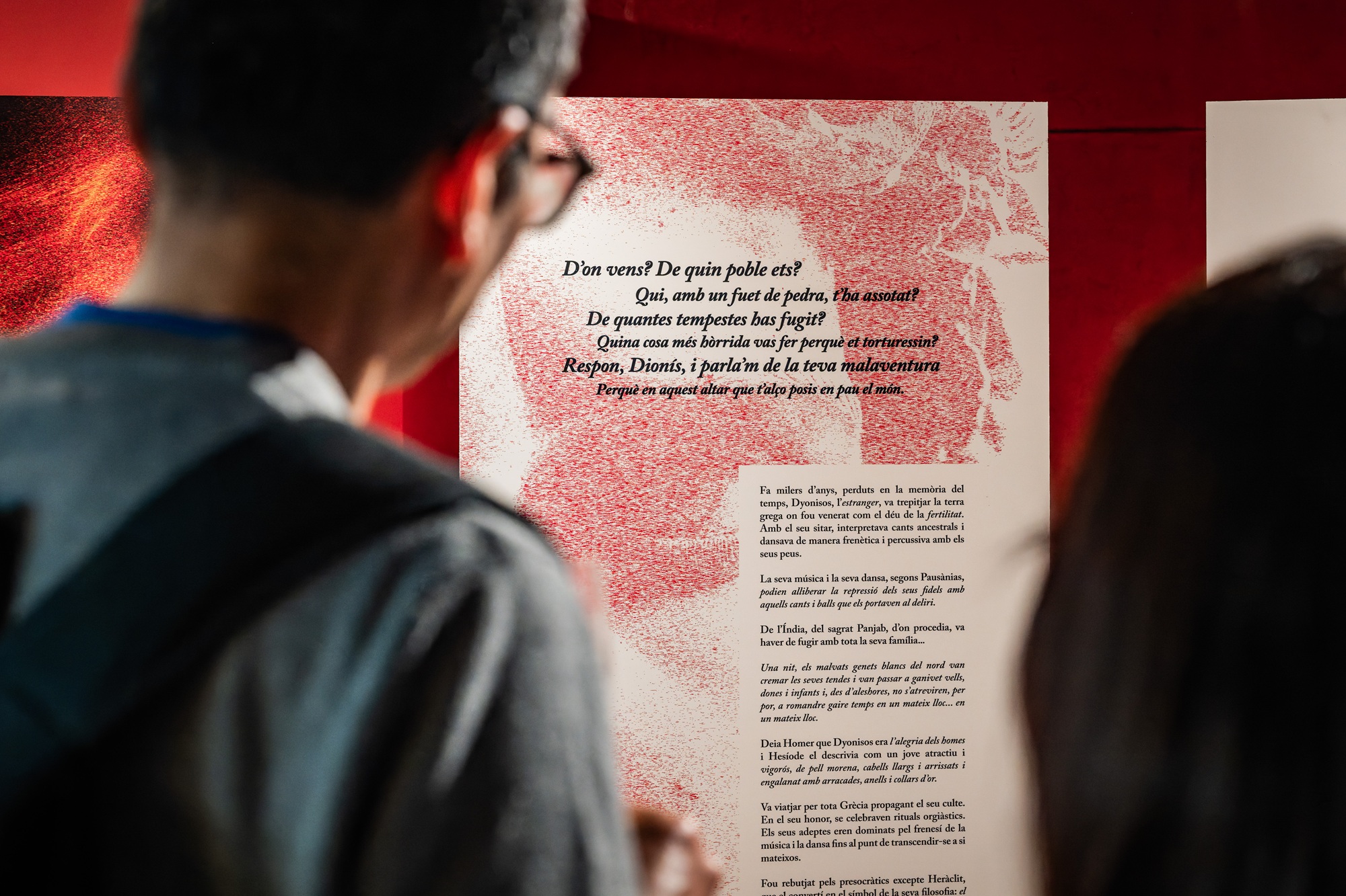 Francisco Suárez, por su parte, convirtió la investigación musical en un relato mitológico capaz de hacer accesible al público la dimensión simbólica del proyecto. Su aportación se articula en torno a la figura de Dionysos, entendido como un dios hindú y un dios extranjero en Grecia, desbordante y transgresor, pero también como una presencia vinculada al éxtasis, al rito, al viaje y a la transformación. A partir de esta figura, Suárez explica el periplo musical del pueblo gitano.